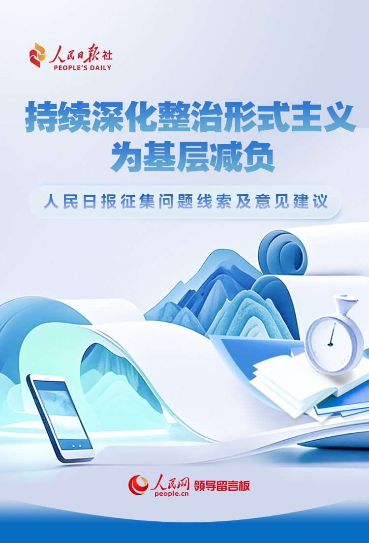 10月28日,中央层面整治形式主义为基层减负专项工作机制会议在京召开。会议强调,要纠治急功近利、盲目决策问题,各地区各部门谋划“十五五”工作要从实际出发,防止盲目冲动跟风、指标层层加码等问题。自2019“基层减负年”起,人民日报、人民网持续征集为基层减负问题线索及意见建议。当前,您身边还有什么形式主义问题线索,对于持续为基层减负有哪些意见建议?我们将保护好您的个人信息安全,欢迎来“领导留言板”说说。